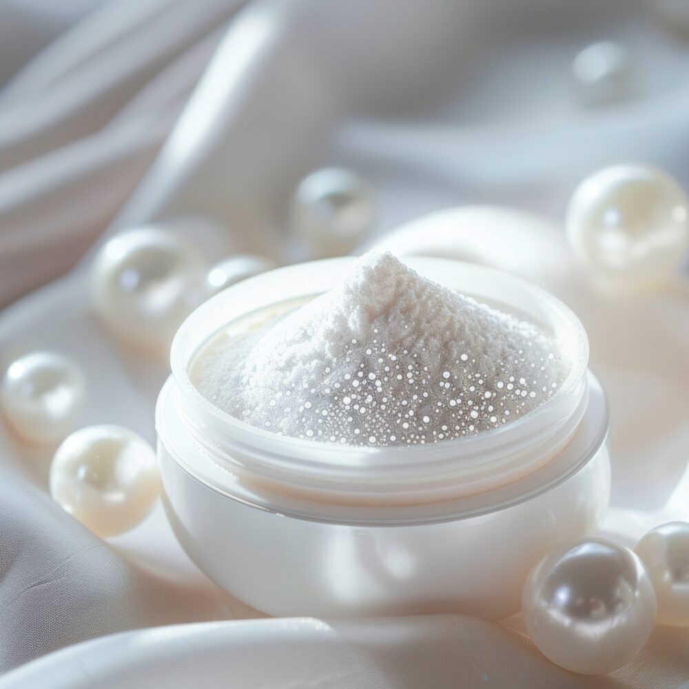Pearl powder, shea butter, sunflower seed oil, beeswax and coconut wax, avocado seed oil, myrrh essential oil, castor seed oil, frankincense essential oil, dragon’s blood oil, jojoba oil and olive oil, vitamin E.